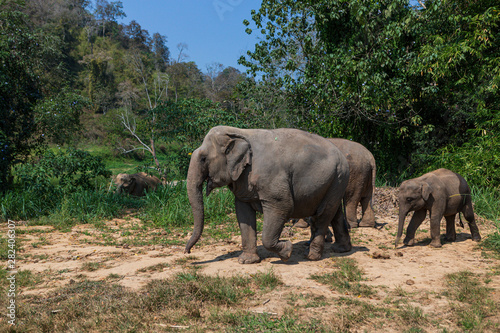 Obraz premium Elephants in Chiang Mai's Elephant Nature Park, Thailand