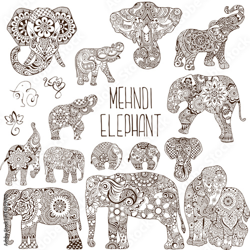 © roman4, Naklejka premium Elephants in the style of mehendi.