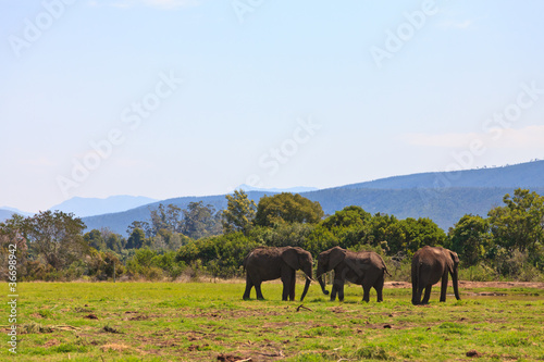 © pwollinga, Fototapeta premium Elephants walking on a grassland