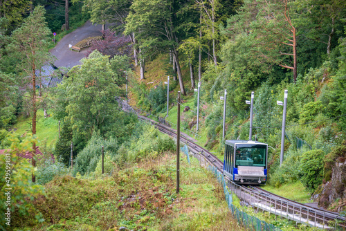 © s-aznar, Fototapeta premium Elevador ascendiendo al monte Floyen en la ciudad de Bergen, Noruega