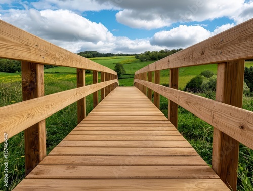 Fototapeta premium Elevated rural bridge made from sustainable timber, offering panoramic views...