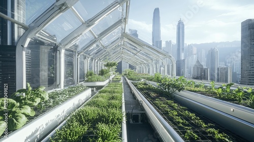 Fototapeta premium Elevated urban garden; cityscape backdrop.