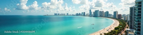 Naklejka premium Elevated view of Miami Beach and Biscayne Bay, waves, vacation