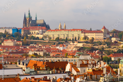 Obraz premium Elevated View of Prague Castle Complex and City Rooftops