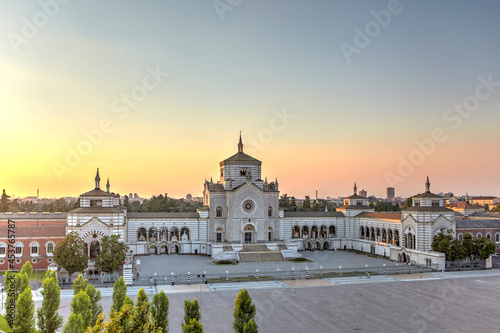 © Massimo Pizzotti, Fototapeta premium Elevated view of the Monumental Cemetery at sunset, Milan, Italy