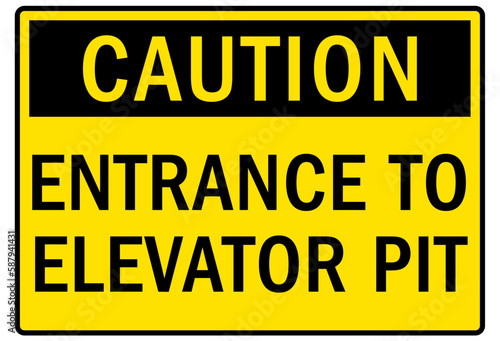 © Pog, Fototapeta premium Elevator safety sign and labels entrance to elevator pit