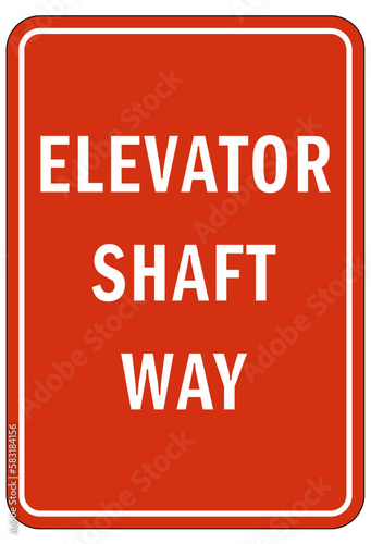 Fototapeta premium Elevator warning sign and labels elevator shaft way