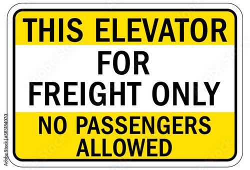 © middlenoodle, Fototapeta premium Elevator warning sign and labels this elevator for freight only. No passengers allowed