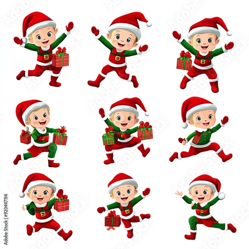 Fototapeta premium Elf Christmas sticker set, playful and 3D realistic High quality image files, design, ideal for holiday crafts,