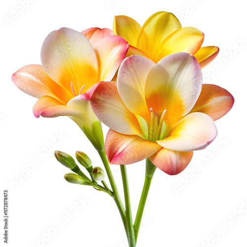 Fototapeta premium elicate Yellow Freesia Flower with Buds, Isolated