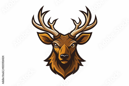 © Chayon Sarker, Naklejka premium Elk head mascot logo design vector illustrator on white background