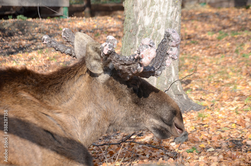 © natka80, Obraz premium elk with large horns growths on their horns in autumn selective