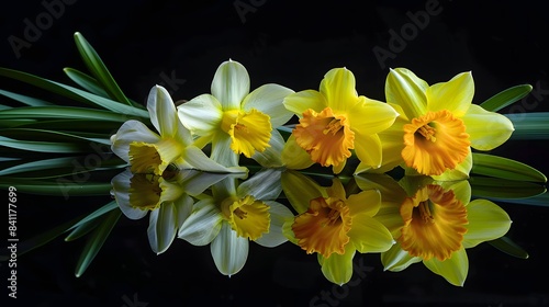 © Jing, Obraz premium ellow narcissus and crown imperial flowers isolated on black