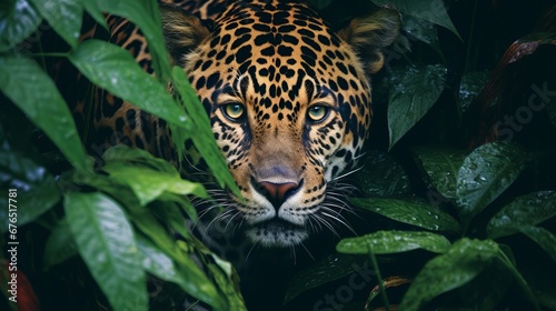 Obraz premium Elusive Jaguar Blend in Dense Jungle Foliage