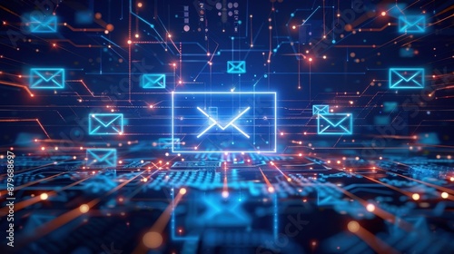 Obraz premium Email security gateway, featuring threat detection and encryption, in a corporate email server, emphasizing secure communication.