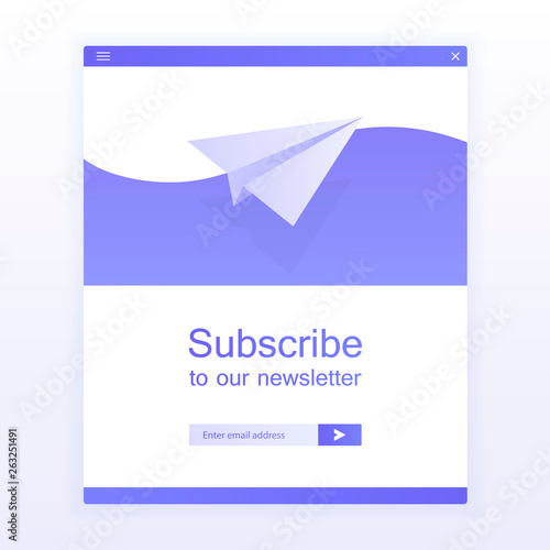 © NazArt, Fototapeta premium Email subscribe, online newsletter vector template with plane and submit button for website. Modern vector illustration