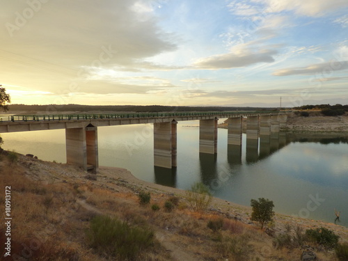 Fototapeta premium Embalse de Valdecañas en Bohonal de Ibor, Cáceres alberga los restos de la ciudad romana de Augustobriga
