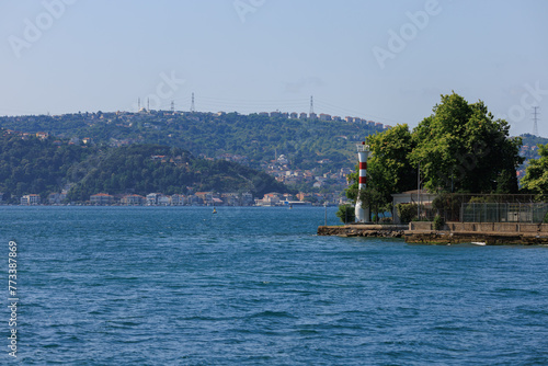 © Kozlik_mozlik, Naklejka premium Embankment and sea, beach and buildings of a southern city, public place in Turkey, on a summer sunny day