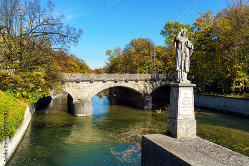 © Rostislav Ageev, Fototapeta premium Embankment of river Isarl, Munich, Germany