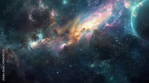 Obraz premium Embark on a cosmic adventure with a breathtaking panoramic view of an...