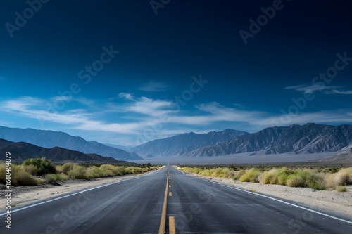 Fototapeta premium Embark on an endless journey along a desert highway, a vanishing-point travel...