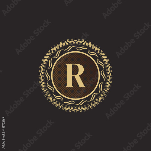 © free, Naklejka premium Emblem Letter R Gold Monogram Design. Luxury Volumetric Logo Template. 3D Line Ornament for Business Sign, Badge, Crest, Label, Boutique Brand, Hotel, Restaurant, Heraldic. Vector Illustration