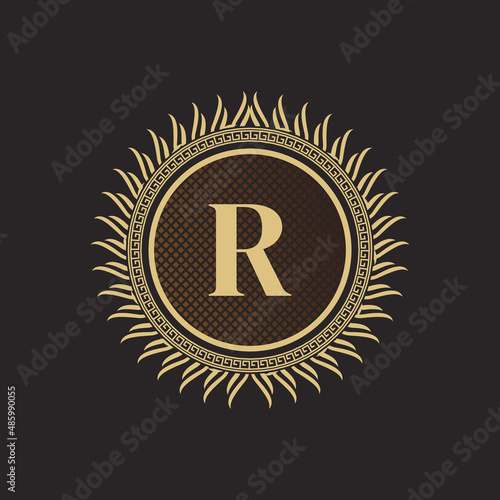 © free, Naklejka premium Emblem Letter R Gold Monogram Design. Luxury Volumetric Logo Template. 3D Line Ornament for Business Sign, Badge, Crest, Label, Boutique Brand, Hotel, Restaurant, Heraldic. Vector Illustration