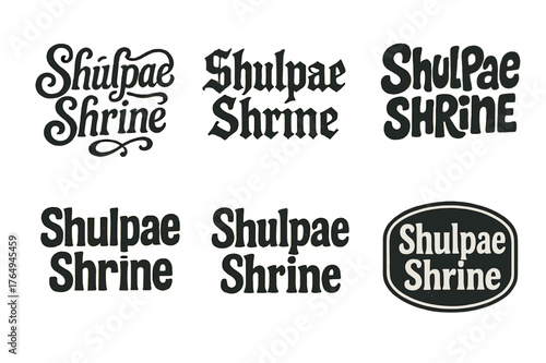 Fototapeta premium Emblematic Lettering Variations. Shulpae Shrine. Set lettering. harmonious lettering variations of the same emblematic concept, each with different artistic