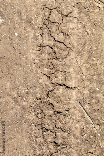 Fototapeta premium Embossed Wheel Tracks Into Rural Dirt Road