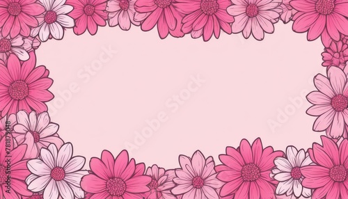 Fototapeta premium Embrace elegance with our hand-drawn pink floral frame illustration. A blank canvas awaits your text or photo