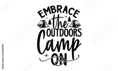 Naklejka premium Embrace the Outdoors Camp On,Camping SVG Design, Campfire T-shirt Design, Sign Making, Card Making, Scrapbooking, Happy Camper Printable Vector Illustration, The best memories are made camping
