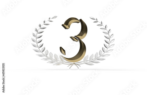 Naklejka premium Embracing Victory: Dynamic 3D Illustration Commemorates Third Place Honor