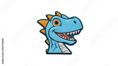 © Marcela, Obraz premium Embroidered blue dinosaur patch smiling on white background