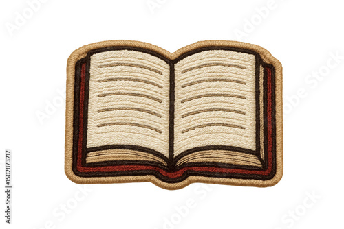 Obraz premium Embroidered Open Book Patch Icon Education Study Design, Transparent Background