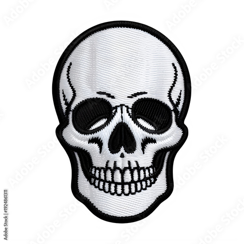 © DREAM STORE, Obraz premium Embroidered White Skull Patch with Black Outline isolated on a transparent background