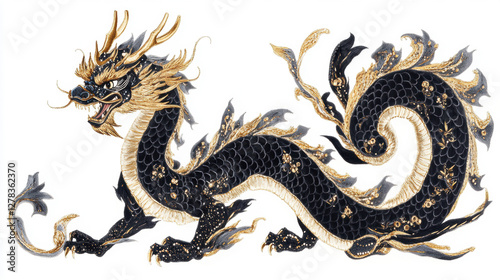© 王二小, Obraz premium EmbroideredBlackandGoldDragon