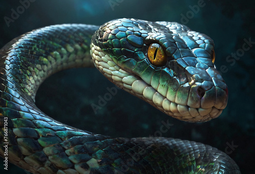 © Вероника Преображенс, Obraz premium Emerald beautiful reptile snake magic