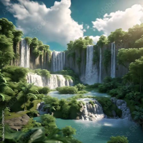 Fototapeta premium Emerald Beauty: majestic waterfalls surrounded by lush greenery create a...