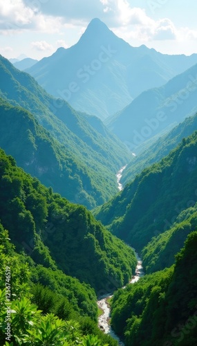© Sourithideth, Fototapeta premium Emerald canopies stretch across mountain peaks, green, mountains, foliage