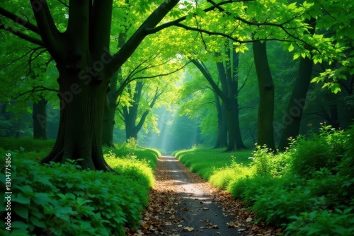 © ball, Fototapeta premium Emerald canopy, rich understory, winding path , trailhead, vibrant, emerald