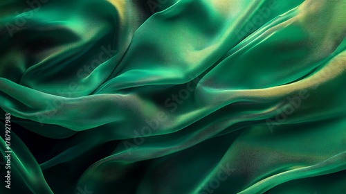 © dewpra, Obraz premium Emerald Fluidity: A Textured Abstract with Shimmering Green Tones and Soft Folds
