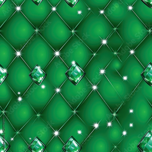 © hamzahalderad, Naklejka premium Emerald gems embedded in quilted green background