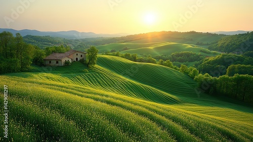 © Sang, Fototapeta premium Emerald grass covers the rolling hills of a peaceful countryside