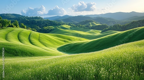 © Sang, Fototapeta premium Emerald grass covers the rolling hills of a peaceful countryside
