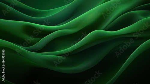 © wulan, Obraz premium Emerald Green Abstract Waves: A Study in Smooth, Dark, and Luxurious Curves