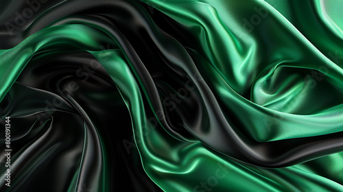 Fototapeta premium Emerald Green and Black Silk Flowing Background