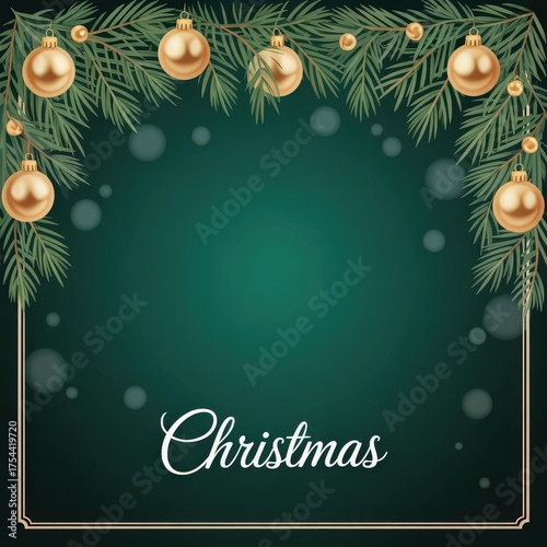 Naklejka premium Emerald Green Luxury Christmas Background — Gold Baubles & Pine Branches