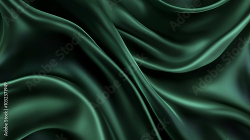 Obraz premium Emerald green satin fabric with smooth, flowing curves, creating a luxurious and elegant backdrop