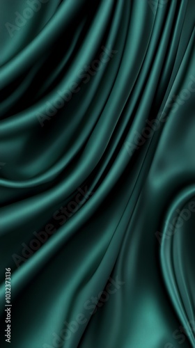 Fototapeta premium Emerald green satin fabric with smooth, flowing curves, creating a luxurious and elegant backdrop