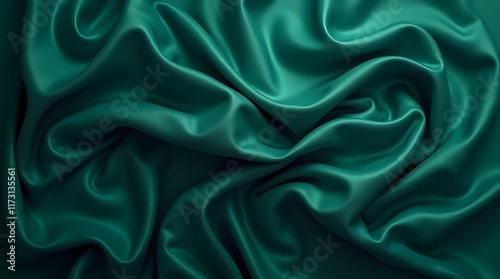 © Jismullah, Obraz premium Emerald Green Silk Drapery: Luxurious Texture and Deep Color